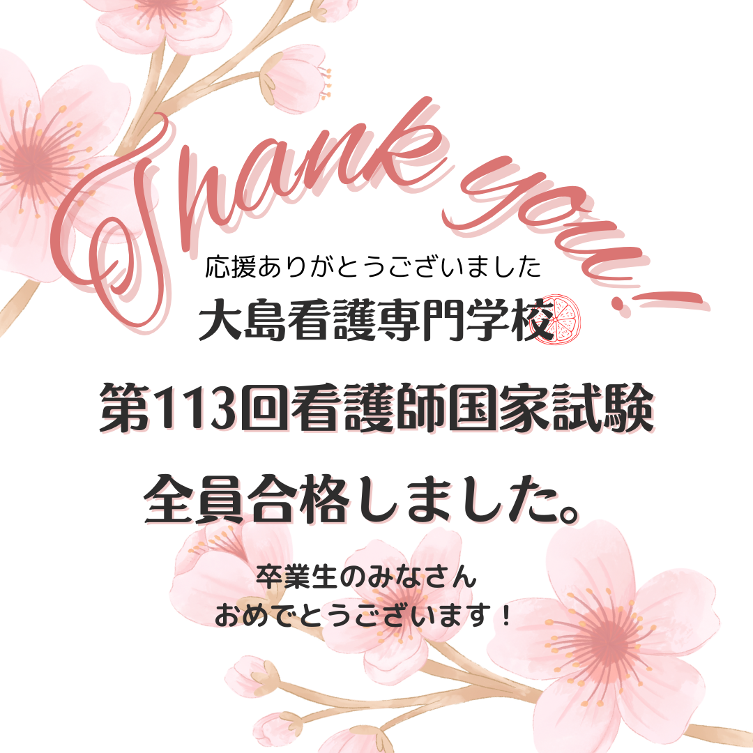 卒業生のみなさん、第113回看護師国家試験、全員合格おめでとうございます!