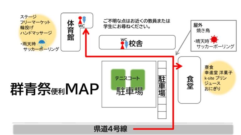催し物や食べ物のある場所を示したMAPをご利用ください。